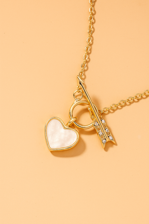 Cupid’s Arrow Heart Necklace – 18K Gold Mother-of-Pearl Pendant